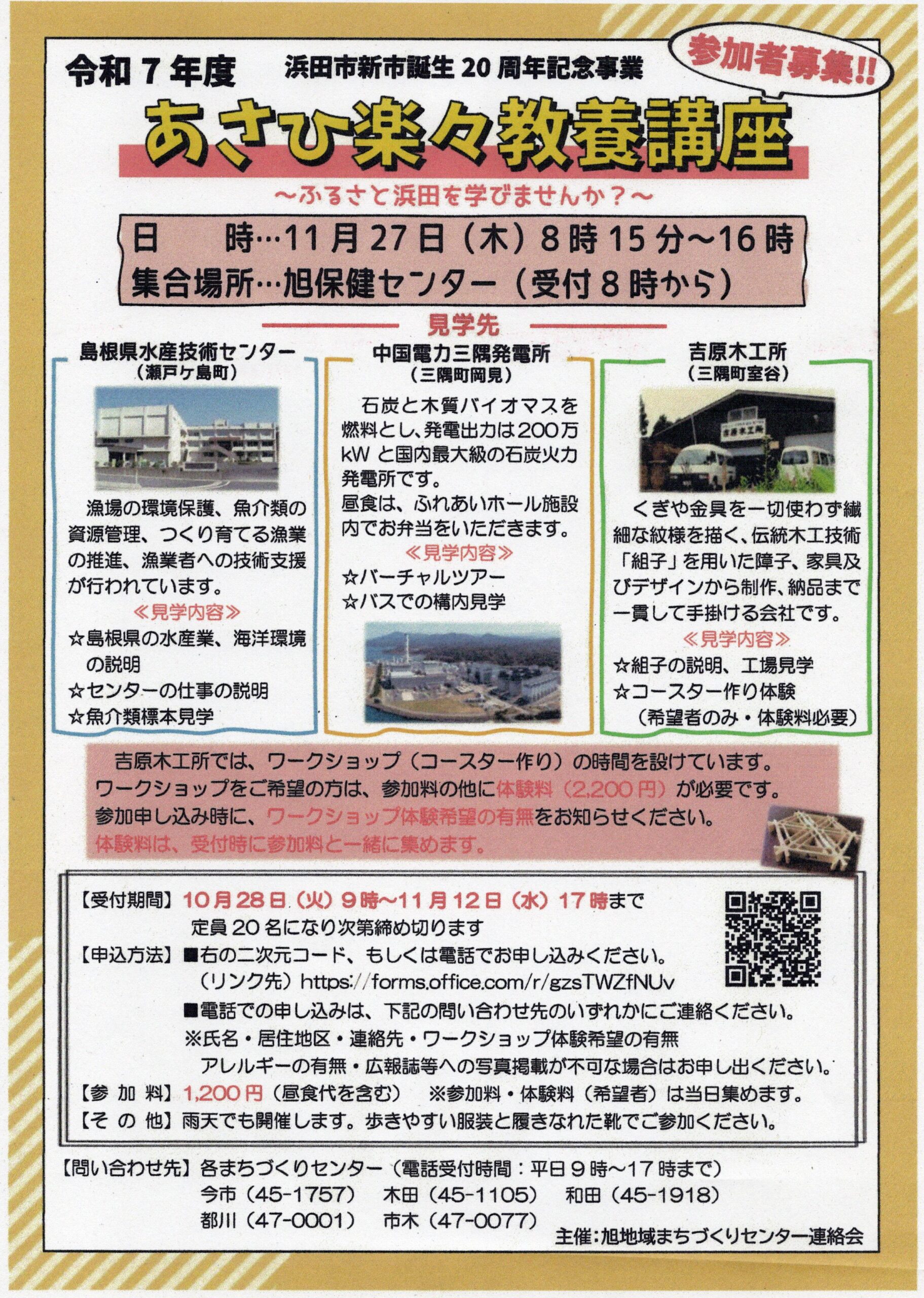 この節目の年に、「特定第三種漁港」に指定されている浜田港や三隅発電所、芳川木工所など浜田市の産業について学び、ふるさとへの愛着と誇りを深めてみませんか?
