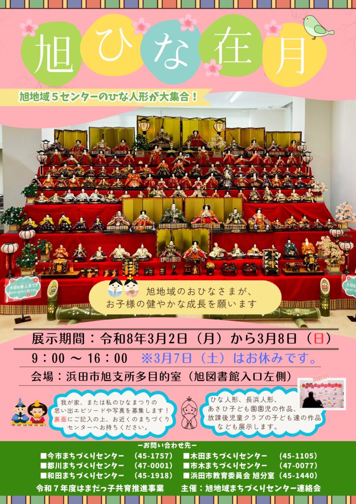 旭ひな在月 イベント詳細 会場: 浜田市旭支所 開催日: 2026年3月4日 9:00 AM – 4:00 PM2026年3月5日 9:00 AM – 4:00 PM2026年3月6日 9:00 AM – 4:00 PM2026年3月8日 9:00 AM – 4:00 PM