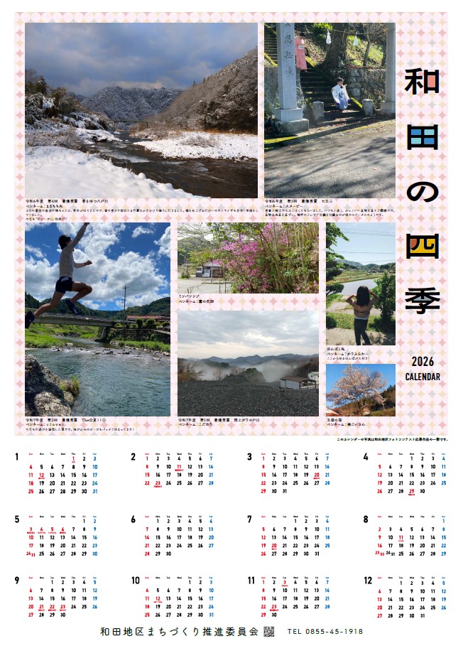 このカレンダーは、年間を通して行っている “和田地区フォトコンテスト”で、最優秀賞に選ばれた作品などで作成されています📸