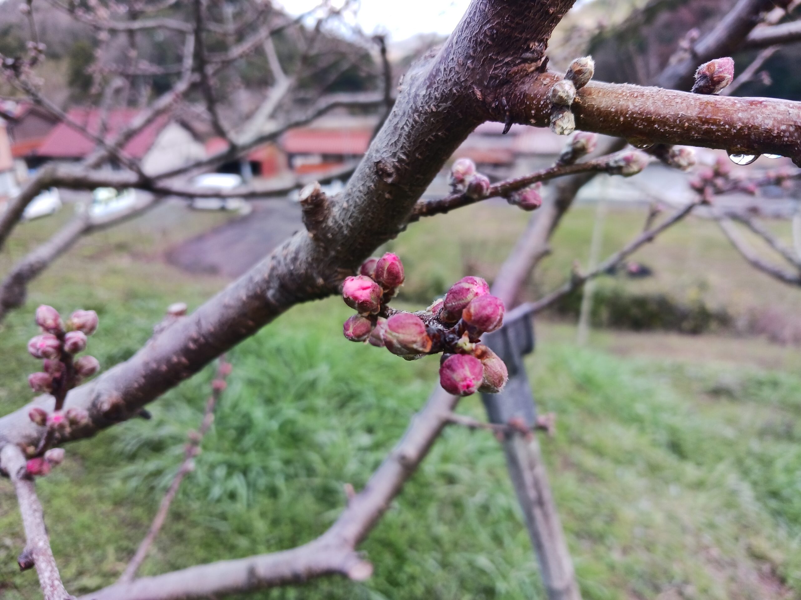 先日、今年2回目の消毒を行いました。消毒をしながら枝を見ますと小さな桃の蕾からピンクの花が見えましたのでお送り致します。これから順調に発育し桃の実をつけてくれればと願っております。今年も昨年同様によろしくお願いいたします。