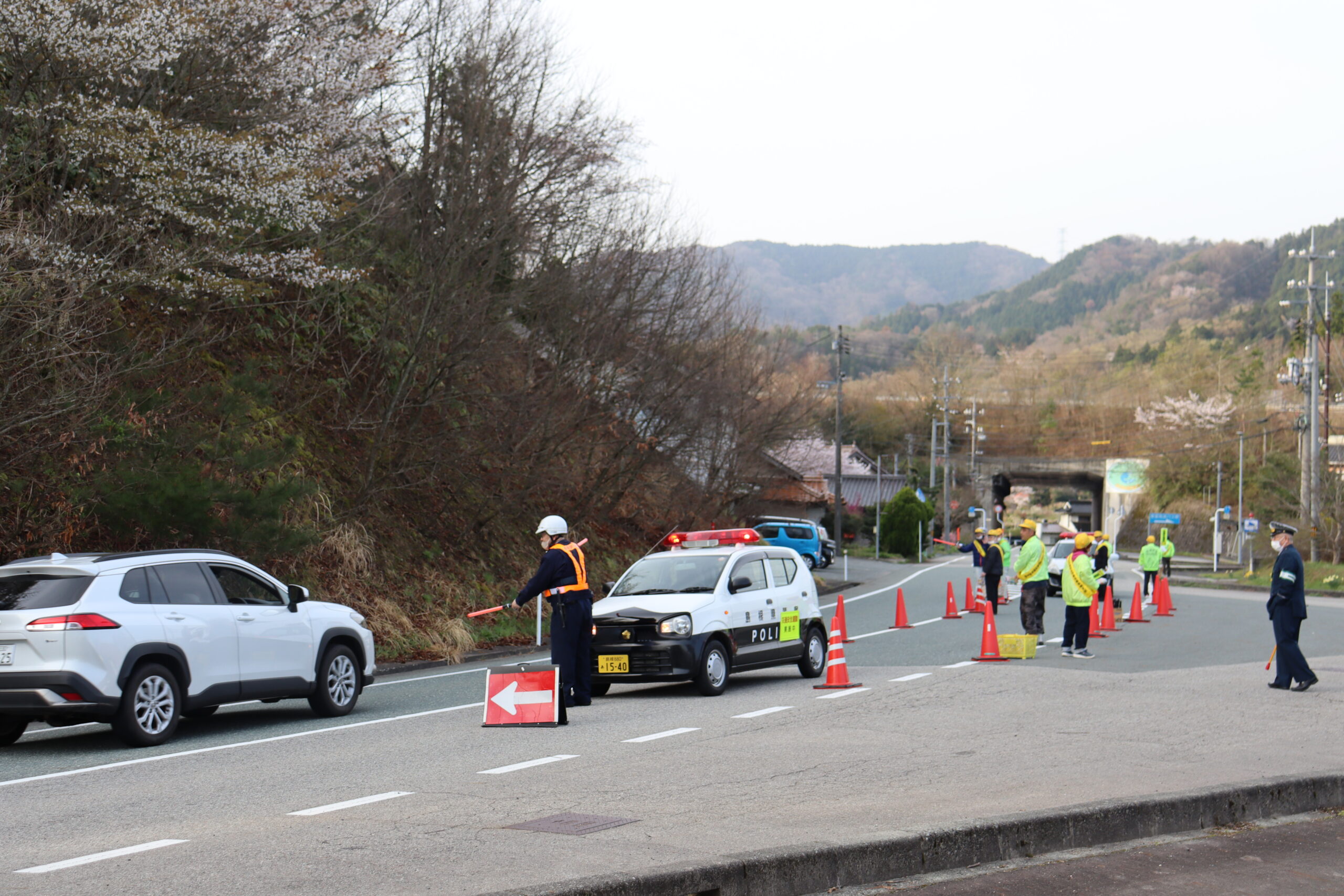 今日は朝7時から、ふるさと歴史公園前の待避所で交通安全テント村が設置され、交通安全協会和田分会、和田駐在所、旭支所等の方々がドライバーへ安全運転を呼びかけられるとともにグッズを配布されました。